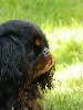 Harley du Prince d'Albret, nous vient de Marseille, c'est la seule noire feu de notre famille King Charles, c'est une princesse discrète, douce, attachante, elle est côté 4, lice recommandée par le club de raceTous les papiers sont prêts, les examens médicaux, les résultats en exposition canine, Harley est lice recommandée.